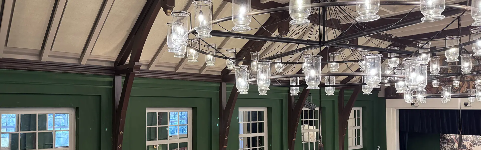 De wanden van de zaal waren al volledig gedecoreerd en maakten integraal deel uit van het interieurconcept. Akoestische aanpassingen aan de wanden waren daarom geen optie. De oplossing moest worden gezocht in het plafond, zonder afbreuk te doen aan het karakter van de ruimte.